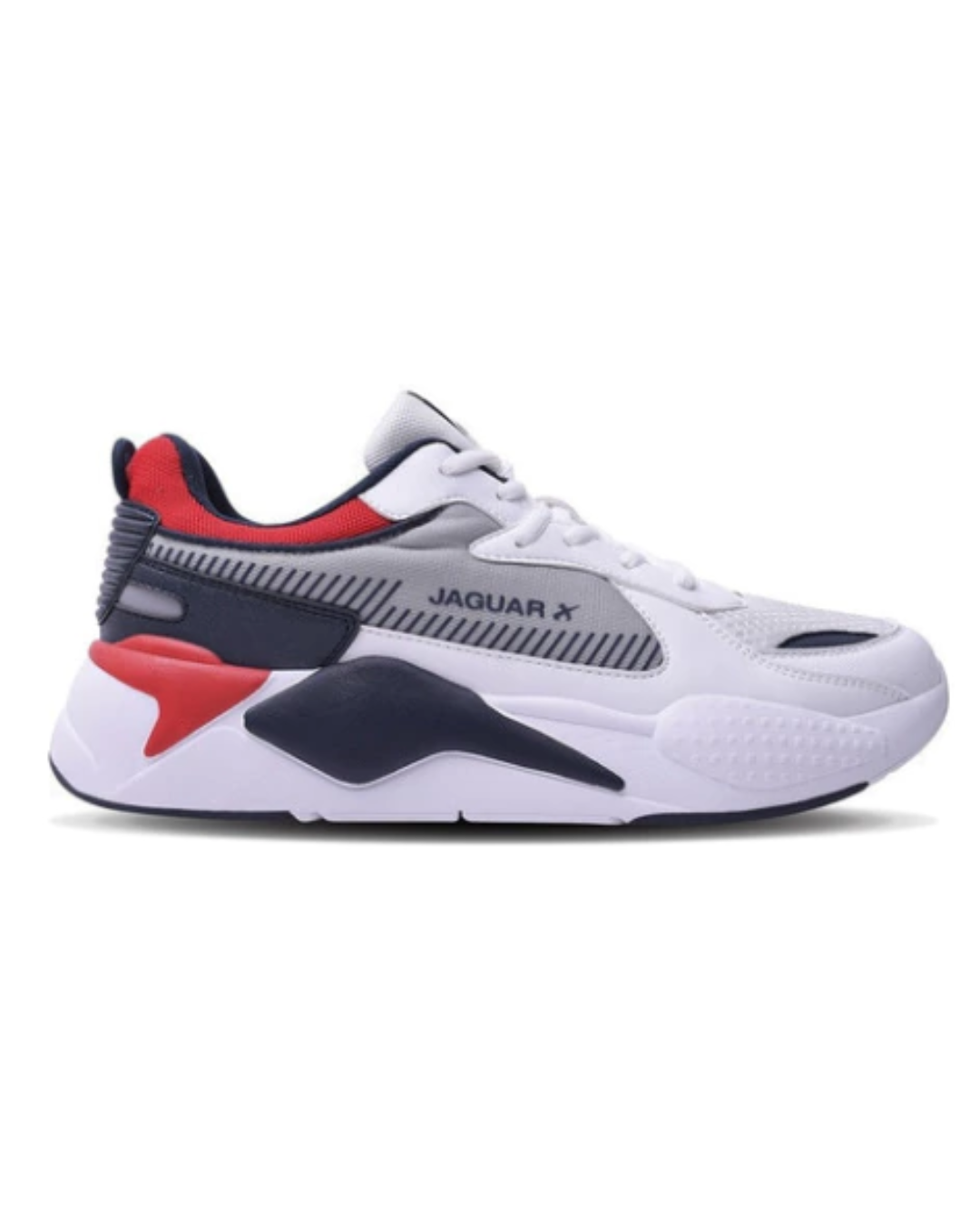 Zapatillas Jaguar, unisex color gris combinado con rojo en los números del 39 al 45.
